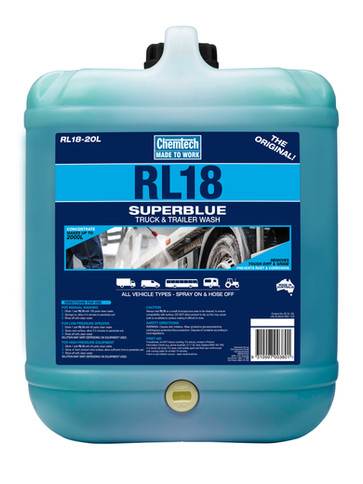 The ‘original’ Super Blue Truck Wash. This biodegradable and solvent-free wash easily removes dirt, mud, oil film and road grime. Safe to use on glass, rubber, aluminum, chrome, vinyl and tarpaulins